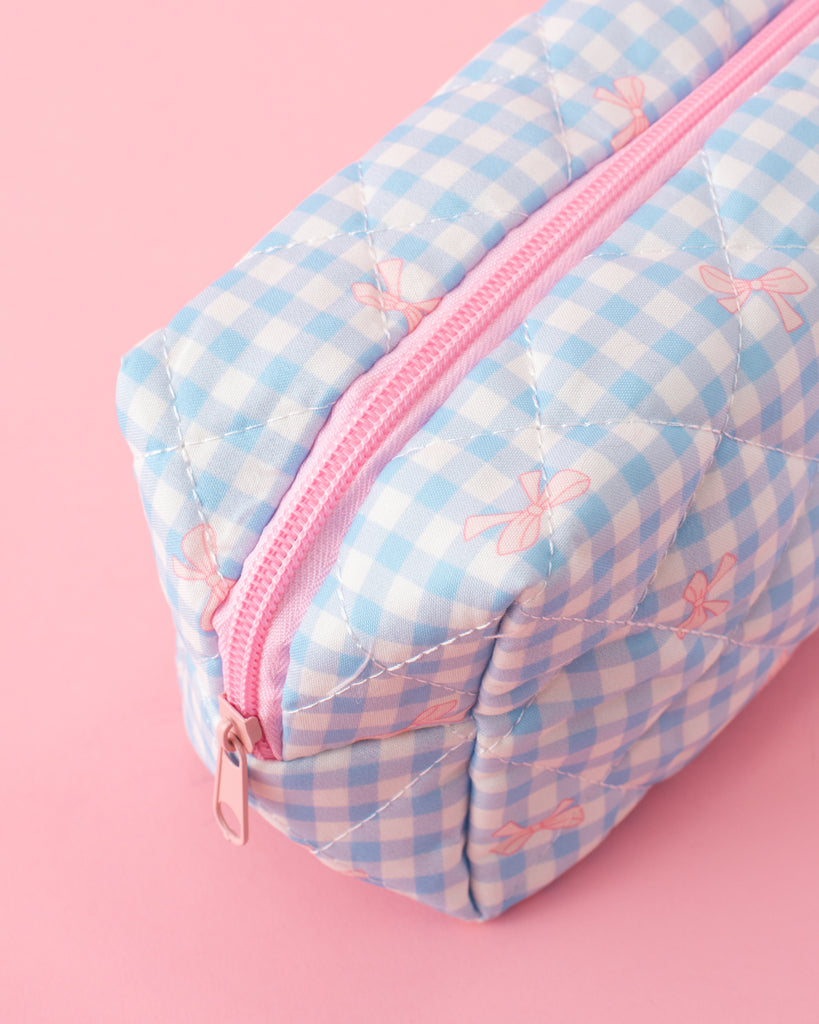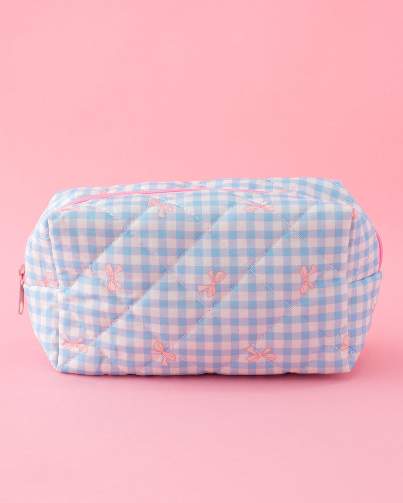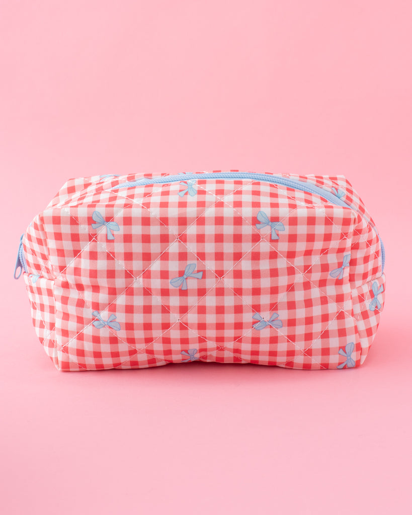 Gingham Bows Quilted Cosmetic Pouch