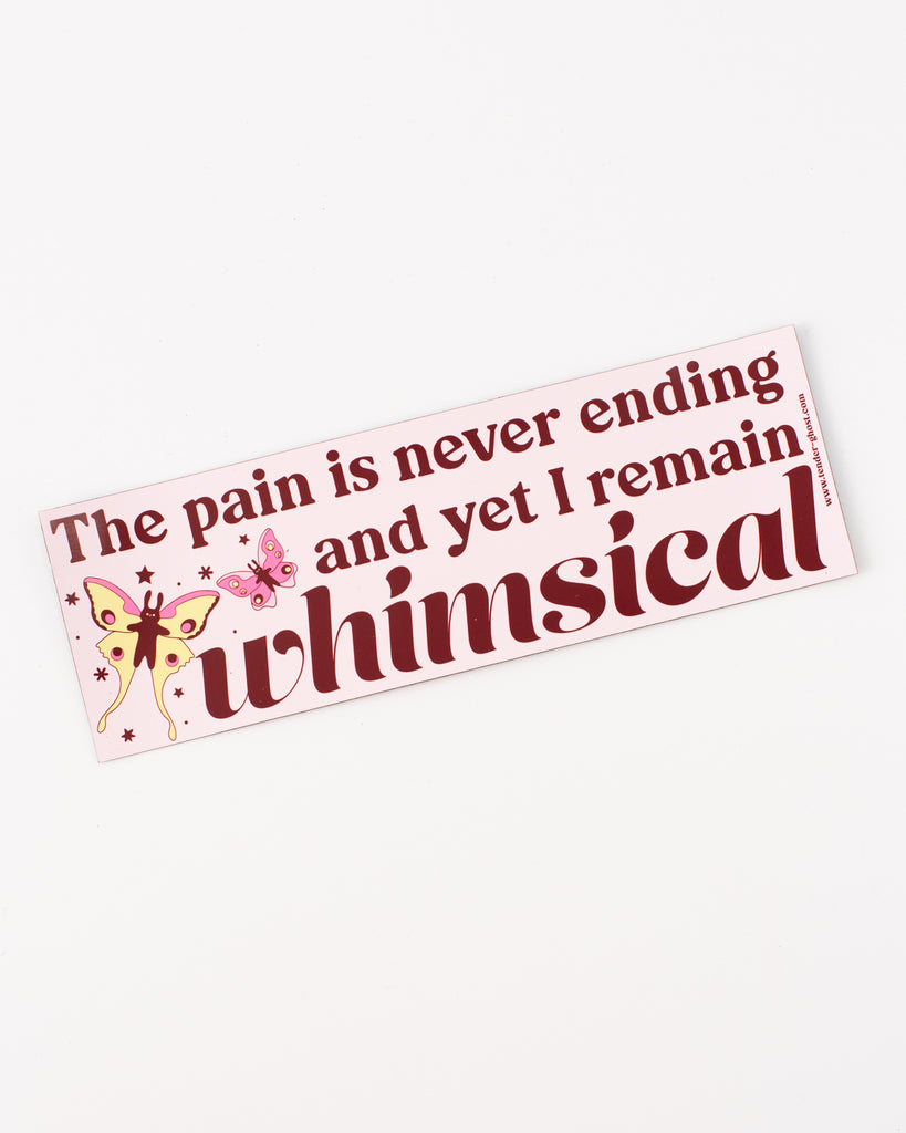 - The pain is never ending, yet I remain Whimsical! This kitschy bumper magnet will leave everyone behind you giggling at how clever you are! The silliest car accessory you need on your bumper. Plus it's a magnet so it won't damage your paint!