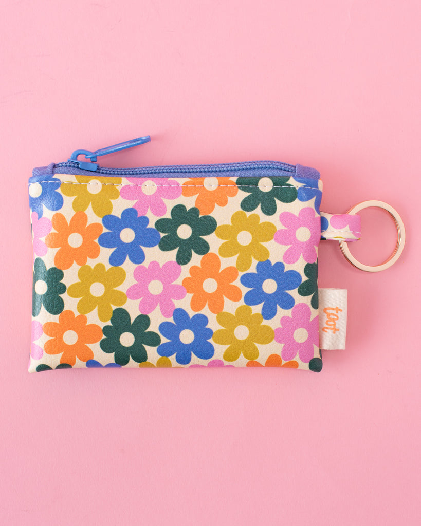 • Our Retro Daisy Coin Pouch is made to hold all your tiny valuables in one place! Cards? Yep. Cash? Sure thing. Pocket Change? If you got it, it'll hold it. Even your favorite chapstick/lip gloss? Well, of course!