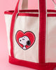 - Need a Valentine? I’m sure everyone’s favorite beagle would LOVE to be yours! Grab our Snoop Heart Embroidered Tote Bag and let everyone know who has your heart! This mini tote bag is the perfect size for your everyday errands or grabbing coffee. This classic style boat tote goes with any outfit or style.