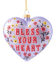 - Every southerner knows that phrase "Bless Your Heart," now you can bring that southern charm to your holiday decor with our Bless Your Heart Ornament! Available in two vibrant colors, these heart shaped ornaments surrounded by flowers are sure to really make your tree stand out!