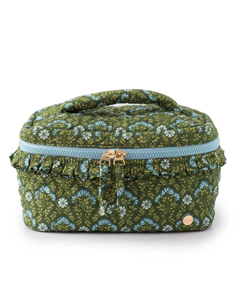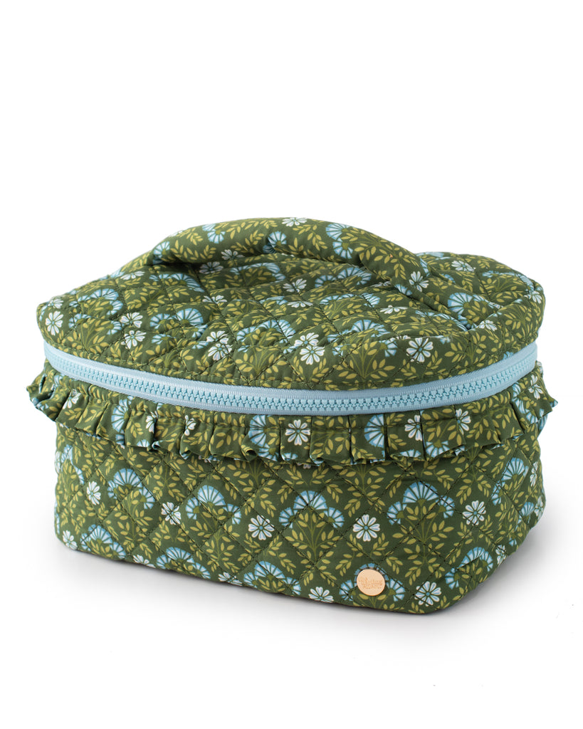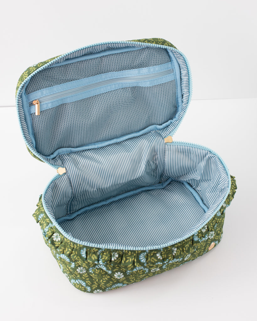 • Traveling... heavy? The Evergreen Forest Cosmetic Bag is spacious enough to hold every single product in your makeup or skincare routine, maybe both! :) Made from premium quilted fabric with a delightful floral print, it’s both durable and stylish. Its wipeable interior keeps your essentials clean and protected, making this bag a practical and charming choice for organizing your beauty must-haves.
