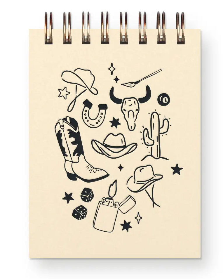 - Calling all the cowgirls and desert queens, our Wild West Mini Notepad is just for you! This mini unlined notepad is perfect for sketching or jotting notes. Spiral bound for easy page flipping and adorned with a fun western print, you can get creative and stay organized with this quirky and fun notepad.